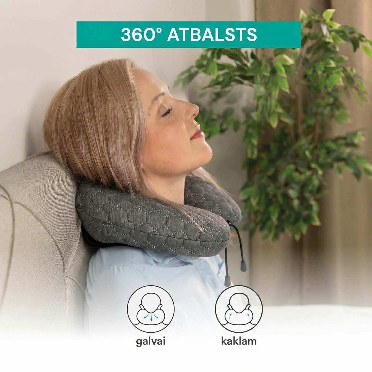 - Viegls un kompakts dizains bezrūpīgam komfortam lidmašīnā, automašīnā vai mājās.