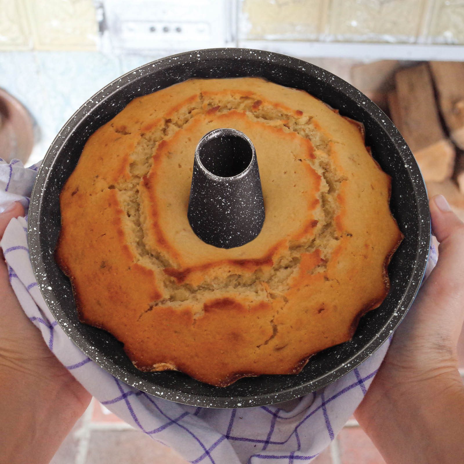 - Oglekļa tērauda bundt cepampanna.