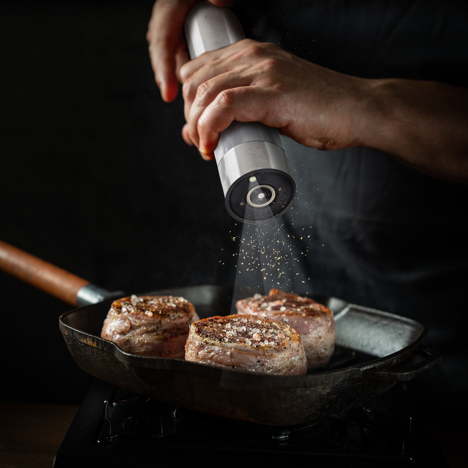 - Iebūvēts apgaismojums precīzai garšvielu pievienošanai.